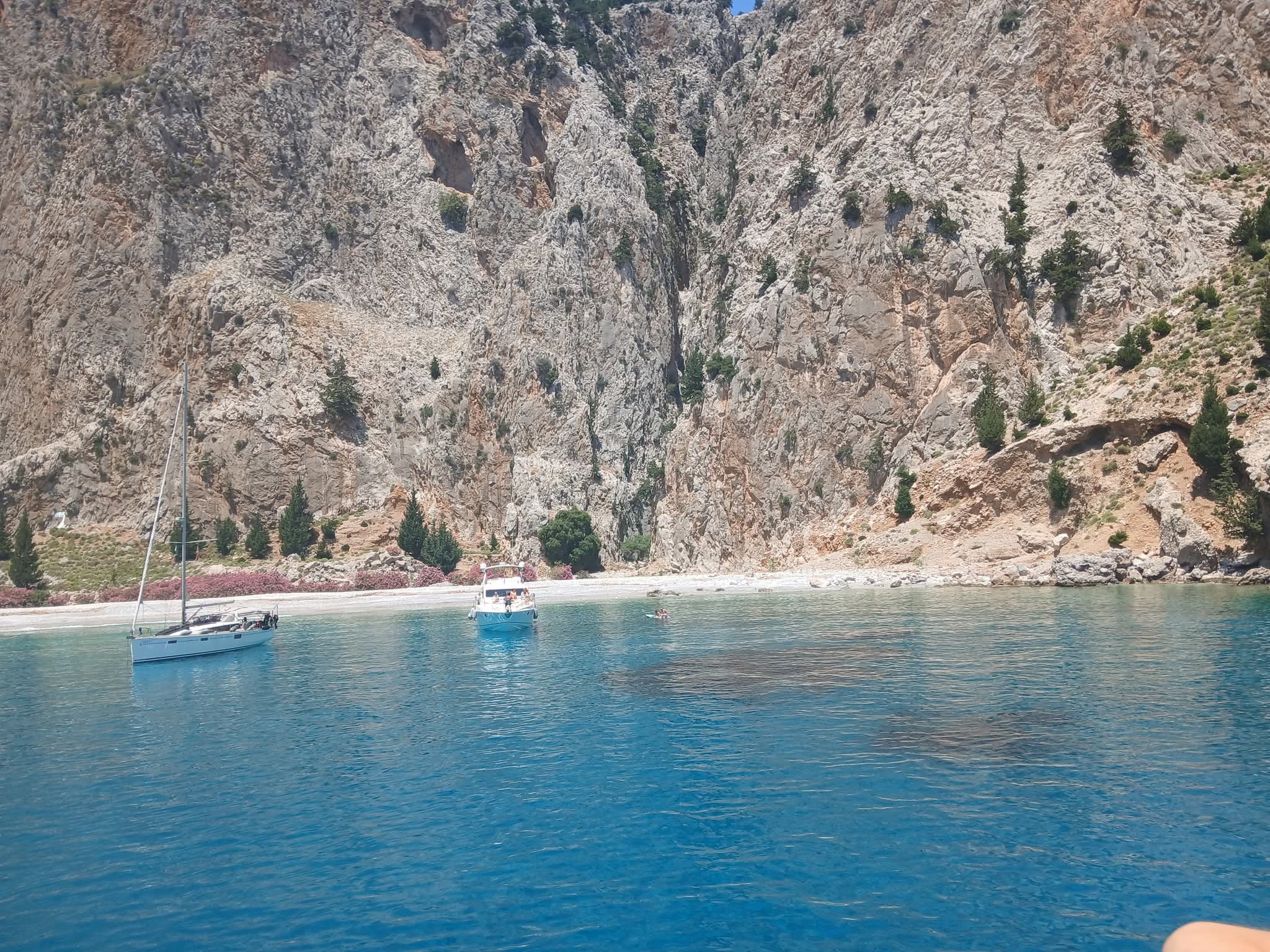 Jag tog en dagsutflykt till ön Symi. Båten åkte från Rhodos till Symi. Vi stannade även till på ett helt magiskt ställe som heter Saint Georgies bay. Badade i det förtrollande havet och det var så otroligt vackert. Det är nog en av de mest romantiska saker jag gjort till mig själv. Det var verkligen en upplevelse som inte behövde delas för att vara romantisk. Ärligt. Jag myste och var så otroligt kär i mig och tillvaron. Outstanding!
